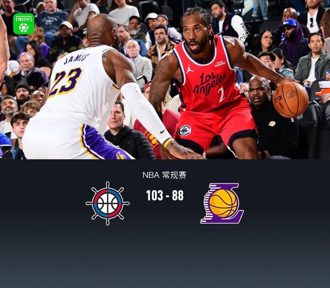 快船103-88湖人逃離西部墊底,倫納德32+12,詹姆斯36分,東契奇傷退