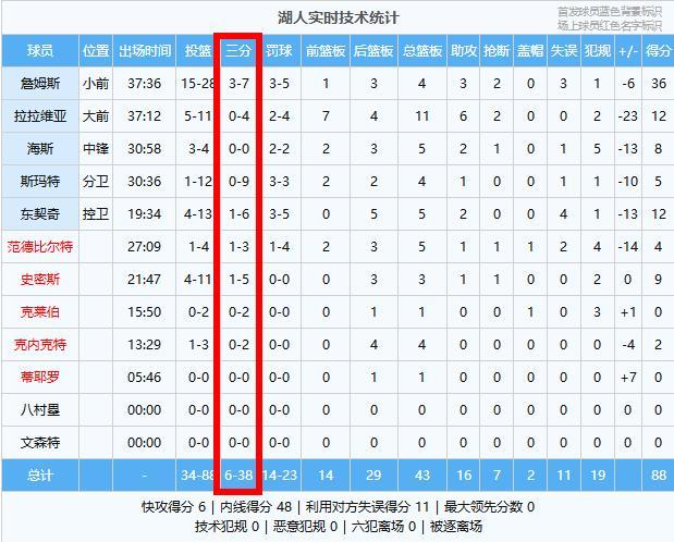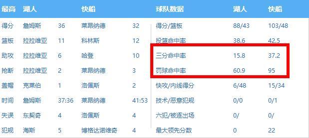 詹姆斯空砍36+4!湖人88-103快船:數據揭示致命輸球點!