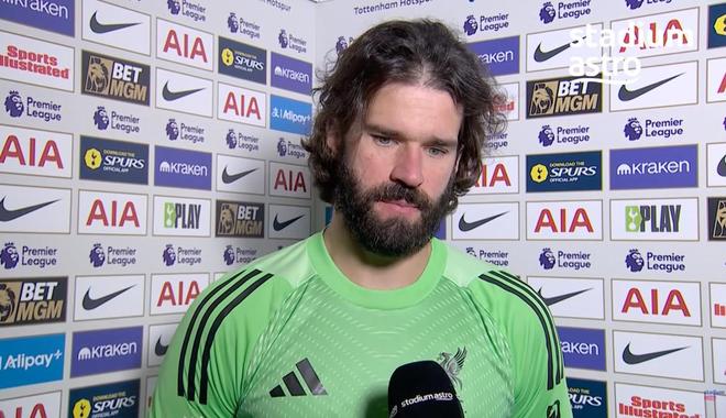 英超第17輪,利物浦客場2-1戰勝熱刺。利物浦門將阿利松賽后接受了Stadium Astro的采訪。